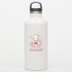 Caricature du chef calmar rose avec moustache tenant couteau et fourche à cuisine. Texte personnalisé.
