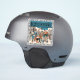 Cet autocollant en vinyle a un groupe de vieux caroleurs et musiciens de Noël dans un coin de rue par un lampadaire avec un bar de notes de musique noire bordé par un cadre noir fantaisiste.