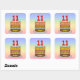 Ce design d'autocollant de carré d'anniversaire chatoyant et coloré présente une représentation d'un gâteau d'anniversaire à trois niveaux avec des bougies en forme de chiffre sur le dessus montrant l'âge de "11", avec le message "HAPPY 11TH BIRTHDAY", et un nom de destinataire modifiable. L'arrière - plan a un motif multicolore pastel en arc-en-ciel inspiré du spectre dégradé. Des autocollants comme ceux-ci peuvent être utilisés ou distribués lors d’une fête d’anniversaire tenue pour célébrer le 11e anniversaire de quelqu’un, ou peut-être utilisés pour préparer des invitations ou envelopper des cadeaux ou des cadeaux pour un tel événement. [~Z0000624]