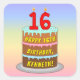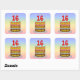 Ce sticker carré coloré et joyeux, sur le thème de l'anniversaire, présente une représentation en bande dessinée d'un gâteau d'anniversaire à trois étages avec des bougies en forme de chiffres sur le dessus montrant le numéro "16", avec le message "HAPPY 16TH BIRTHDAY", et un nom de destinataire personnalisable. L'arrière - plan a un motif multicolore pastel arc-en-ciel inspiré du spectre dégradé. Des autocollants sur le thème de l'anniversaire amusant comme ceux-ci peuvent être donnés ou utilisés à une fête pour quelqu'un qui célèbre son 16e anniversaire, ou peut-être utilisés pour emballer des cadeaux/des cadeaux ou préparer des invitations pour un tel événement. [~Z0000624]