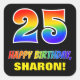Ce sticker joyeux, amusant et coloré sur le thème de l'anniversaire comporte un grand nombre de "25" et le message "HAPPY BANTHDAY", tous deux colorés avec un motif inspiré par un gradient de spectre arc-en-ciel, avec un nom personnalisé jaune gras. L'arrière - plan est noir de couleur. Des autocollants sur le thème de l’anniversaire amusant comme celui-ci peuvent être utilisés pour envelopper un cadeau ou un cadeau donné pour célébrer le vingt-cinquième anniversaire de quelqu’un, ou peut-être être remis aux invités à une fête d’anniversaire. [~Z0000480]