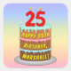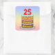 Ce sticker carré coloré et optimisé à thème d'anniversaire présente une représentation de dessin animé d'un gâteau d'anniversaire à trois niveaux avec des bougies en forme de numéro sur le dessus montrant l'âge "25", avec le message "HAPPY 25TH BIRTHDAY," et un nom de destinataire personnalisé. L'arrière - plan a un motif multicolore pastel arc-en-ciel inspiré du spectre dégradé. Des autocollants comme ceux-ci peuvent être utilisés pour célébrer le 25e anniversaire de quelqu’un. [~Z0000624]