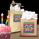 Un autocollant à rayure arc-en-ciel brillant avec un script décontracté de "Joyeux anniversaire" intégré dans les rayures. Ajoutez une explosion de couleur à vos surprises pour vos 25 ans en rayures colorées vibrantes avec des chiffres. Amusant pour tous les types de 25ème anniversaire.