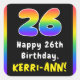 Ce design accrocheur et joyeux d'autocollant carré thème d'anniversaire comprend le numéro "26" avec un motif multicolore du spectre arc-en-ciel inspiré du gradient, avec le message "Happy 26th Birthday," et un nom de destinataire personnalisé. Des autocollants sur le thème de l'anniversaire, comme ceux-ci, peuvent être donnés ou utilisés à une fête pour quelqu'un qui célèbre son 26e anniversaire, ou peut-être utilisés pour préparer des invitations ou des cadeaux pour un tel événement. [~Z0000630]