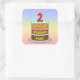 Ce design amusant et coloré d'autocollant carré à thème d'anniversaire présente une représentation de dessin animé d'un gâteau d'anniversaire à trois niveaux avec une bougie en forme de chiffre sur le dessus montrant le numéro "2", avec le message "HAPPY 2ND BIRTHDAY", et un nom de destinataire modifiable. L'arrière - plan dispose d'un motif multicolore pastel en arc-en-ciel inspiré du spectre dégradé. Des autocollants optimistes comme ceux-ci peuvent être utilisés ou donnés lors d'une fête d'anniversaire organisée pour quelqu'un pour célébrer leur deuxième anniversaire, ou peut-être utilisés lors de la préparation d'invitations, de cadeaux ou de cadeaux pour un tel événement. [~Z0000624]