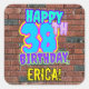 Ce motif autocollant amusant carré d'anniversaire comporte le message "HAPPY 38TH BANTHDAY", ayant une apparence colorée, vibrante, graffiti et art urbain inspiré, en plus d'un nom de destinataire personnalisable. L'arrière - plan dispose d'un motif inspiré de l'aspect d'un mur en brique. Des autocollants dynamiques, amusants et personnalisés comme celui-ci peuvent être donnés comme cadeau d’anniversaire, utilisés lors de l’emballage de cadeaux ou de cadeaux, ou peut-être utilisés comme décoration de fête d’anniversaire pour célébrer le 38e anniversaire de quelqu’un. [~Z0000535]