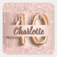Sticker Carré 40e anniversaire rose gouttes d'or