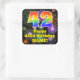 Ce design amusant et excitant autocollant carré d'anniversaire comprend un grand nombre de "42" avec un coloré dégradé de spectre arc-en-ciel inspiré motif, avec le message "Happy 42nd Birthday,", et un nom personnalisé. L'arrière - plan présente un motif coloré inspiré par l'apparition d'un feu d'artifice festif éclatant. Des autocollants dynamiques, amusants et personnalisés comme celui-ci peuvent être donnés comme cadeau d’anniversaire, utilisés lors de l’emballage de cadeaux ou de cadeaux, ou peut-être utilisés comme décorations de fête d’anniversaire pour célébrer le 42e anniversaire de quelqu’un. [~Z0000579]