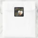 Créez des autocollants en Merci noir et or de style carré pour la fête du 50e anniversaire, avec un design élégant qui comprend un modèle pour la photo, le nom et le jalon en forme de coeur. Sur ce design, l'arrière - plan noir imite la surface métallique. Utilisez le modèle pour taper votre prénom et votre nom de famille et télécharger une image. Vous pouvez également changer le jalon en 30ème, 40ème, 60ème, 70ème et ainsi de suite. Cette conception est optimisée pour la forme carré, donc, si vous choisissez une autre forme, vous pourriez avoir besoin de déplacer certains éléments.