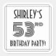 Ce design élégant et Roaring Twenties a inspiré cinquante-troisième anniversaire de la conception autocollant carré avec un nom modifiable, un look art déco complexe inspiré le numéro "53ème", le message "ANNIVERSAIRE !", et un motif frontalier composé de lignes. Des autocollants comme ceux-ci peuvent être utilisés ou donnés à une fête d'anniversaire tenue pour quelqu'un qui célèbre son 53e anniversaire, ou peut-être utilisés pour préparer des invitations ou envelopper des cadeaux/cadeaux pour un tel événement. [~Z0000618]