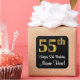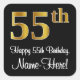Ce design élégant, luxueux et sophistiqué d'autocollant carré à thème d'anniversaire comporte un grand numéro ordinal "55e" avec un look faux/imitation or, ainsi que le message de voeux d'anniversaire "55e anniversaire heureux", et un nom personnalisé dans une police de style script. L'arrière - plan est noir de couleur. Des autocollants sophistiqués comme celui-ci peuvent être utilisés pour envelopper les cadeaux donnés à quelqu'un pour célébrer son cinquante-cinquième anniversaire, ou peut-être être distribués aux participants à une fête d'anniversaire. [~Z0000517]