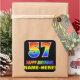 Ce sticker d'anniversaire joyeux, coloré et amusant comporte un grand nombre de "57" et le message "HAPPY BANTHDAY", tous deux avec un dégradé de arc-en-ciel coloré inspiré couleur motif, avec un nom personnalisé jaune gras. L'arrière - plan est noir de couleur. Des autocollants amusants comme celui-ci peuvent être utilisés pour envelopper les cadeaux donnés à quelqu'un pour célébrer son cinquante-septième anniversaire, ou peut-être être donnés aux invités à une fête d'anniversaire ou à une fête. [~Z0000480]