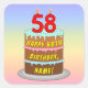 Sticker Carré 58e anniversaire : Fun Cake and Candles + Nom pers