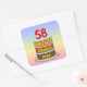 Ce sticker carré à thème d'anniversaire joyeux et amusant présente une représentation de dessin animé d'un gâteau d'anniversaire à trois niveaux avec des bougies en forme de numéro sur le dessus montrant l'âge "58", avec le message "HAPPY 58TH BIRTHDAY," et un nom de destinataire personnalisé. L'arrière - plan dispose d'un motif multicolore pastel en arc-en-ciel inspiré du spectre dégradé. Des autocollants comme ceux-ci peuvent être distribués ou utilisés à une fête organisée pour célébrer le 58e anniversaire de quelqu’un, ou peut-être utilisés pour emballer des cadeaux ou préparer des invitations à un tel événement. [~Z0000624]