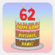 Sticker Carré 62e anniversaire : Fun Cake and Candles + Nom pers