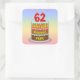 Ce design coloré et amusant d'autocollant carré d'anniversaire présente une représentation de style dessin animé d'un gâteau d'anniversaire à trois niveaux avec des bougies en forme de chiffres sur le dessus montrant le numéro "62", avec le message "HAPPY 62ND BIRTHDAY", et un nom de destinataire personnalisable. L'arrière - plan a un motif multicolore pastel en arc-en-ciel inspiré du spectre dégradé. Des autocollants comme ceux-ci peuvent être utilisés ou donnés à une fête organisée pour célébrer le 62e anniversaire de quelqu’un, ou peut-être utilisés pour préparer des invitations ou envelopper des cadeaux pour un tel événement. [~Z0000624]