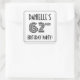 Ce design luxueux et roaring Twenties a inspiré soixante-deuxième anniversaire de célébration / fête carré autocollant design comprend un nom personnalisé, un style art déco complexe inspiré numéro "62e", le message "BIRTHDAY PARTY!", et un motif frontalier composé de lignes. Des autocollants comme ceux-ci peuvent être utilisés ou donnés à une fête organisée pour quelqu'un qui célèbre son 62e anniversaire, ou peut-être utilisés pour préparer des invitations ou des cadeaux pour un tel événement. [~Z0000618]