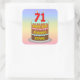 Ce sticker carré à thème d'anniversaire chic et coloré présente une représentation de dessin animé d'un gâteau d'anniversaire à trois niveaux avec des bougies en forme de chiffres sur le dessus montrant le numéro "71", avec le message "HAPPY 71ST BANTHDAY", et un nom de destinataire personnalisable. L'arrière - plan a un motif multicolore pastel en arc-en-ciel inspiré du spectre dégradé. Des autocollants comme ceux-ci peuvent être donnés ou utilisés à une fête d'anniversaire tenue pour quelqu'un qui célèbre son 71e anniversaire, ou peut-être utilisés pour préparer des cadeaux/cadeaux ou des invitations à un tel événement. [~Z0000624]
