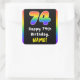 Ce design dynamique et gai autocollant carré d'anniversaire comprend le numéro "74" avec un motif multicolore inspiré du spectre arc-en-ciel, avec le message "Happy 74th Birthday," et un nom de destinataire personnalisé. Des autocollants audacieux comme ceux-ci peuvent être distribués ou utilisés à une fête d’anniversaire célébrant le 74e anniversaire de quelqu’un, ou peut-être utilisés pour préparer des invitations, des cadeaux ou des cadeaux pour un tel événement. [~Z0000630]