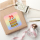Ce sticker carré coloré et optimisé, sur le thème de l'anniversaire, présente une représentation en bande dessinée d'un gâteau d'anniversaire à trois niveaux avec des bougies en forme de chiffres sur le dessus montrant le numéro "79", avec le message "HAPPY 79TH BIRTHDAY", et un nom de destinataire personnalisé. L'arrière - plan a un motif multicolore pastel en arc-en-ciel inspiré du spectre dégradé. Des autocollants sur le thème de l’anniversaire comme ceux-ci peuvent être distribués ou utilisés à une fête célébrant le 79e anniversaire de quelqu’un, ou peut-être utilisés lors de la préparation d’invitations, de cadeaux ou de cadeaux pour un tel événement. [~Z0000624]