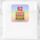 Ce design coloré et joyeux d'autocollant carré à thème d'anniversaire présente une représentation de dessin animé d'un gâteau d'anniversaire à trois niveaux avec des bougies en forme de chiffres sur le dessus montrant le numéro "82", avec le message "HAPPY 82ND BIRTHDAY", et un nom de destinataire modifiable. L'arrière - plan a un motif multicolore pastel arc-en-ciel inspiré du spectre dégradé. Des autocollants sur le thème de l’anniversaire amusant comme ceux-ci peuvent être utilisés ou donnés à une fête pour célébrer le 82e anniversaire de quelqu’un, ou peut-être utilisés pour préparer des invitations ou envelopper des cadeaux/cadeaux pour un tel événement. [~Z0000624]