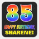 Ce design coloré, gai et amusant autocollant d'anniversaire comporte un grand nombre de "85" et le message "HAPPY BANTHDAY", tous deux avec un dégradé de arc-en-ciel inspiré couleur motif, avec un nom personnalisé jaune gras. L'arrière - plan est noir de couleur. Des autocollants sur le thème de l'anniversaire amusant comme celui-ci pourraient être utilisés pour envelopper un cadeau ou un cadeau offert à quelqu'un qui célèbre son quatre-vingt-cinquième anniversaire, ou peut-être être donné aux invités à une fête d'anniversaire. [~Z0000480]