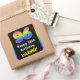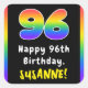 Ce design d'autocollant carré à thème d'anniversaire optimisé et passionnant comprend un grand nombre de "96" avec un motif coloré à spectre arc-en-ciel inspiré de dégradé, avec le message "Happy 96th Birthday," et un nom de destinataire personnalisé. Des autocollants comme ceux-ci peuvent être utilisés pour célébrer le quatre-vingt-seize anniversaire de quelqu’un. [~Z0000630]