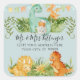 "Autocollant Carré d'Adresse de Retour de Douche de Feuillage de Bébé Dinosaure Mignon." Adresse de retour combinée avec un sceau d'enveloppe décoratif pour votre Baby Shower, Annonces de Naissance et notes de Remerciement. Aquarelle de bébés dinosaures mignons célébrant le nouveau bébé dans une jungle de feuillage vert. Art par HeyIAmAlice, conçu graphiquement par l'artiste licencié internationalement, Audrey Jeanne Roberts. Copyright.