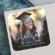 Étiquettes d'adresse de retour de diplôme avec votre nom dans une police de script de style moderne avec l'adresse ci-dessous sur une photo du diplômé.