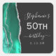 Cet élégant autocollant moderne de fête du 50e anniversaire présente une aquarelle vert de mer géode géode avec la parties scintillant faux argent. Customisez facilement le texte gris argenté sur un arrière - plan noir en ardoise avec le nom de l'invité d'honneur, l'année d'anniversaire et la date.