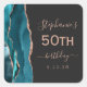Cet élégant autocollant moderne de fête de 50e anniversaire présente un design d'agate d'aquarelle bleu turquoise et orné d'une parties scintillant d'or rose faux. Customisez facilement le texte couleur rose sur un arrière - plan noir en ardoise avec le nom de l'invité d'honneur, l'année d'anniversaire et la date.