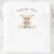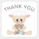 Un autocollant de remerciement mignon pour une fête d'anniversaire de baby shower ou de jeune enfant, ce design présente un petit agneau doux tenant un ours en peluche. Le texte du Merci peut être modifié avec le texte souhaité. L'adorable image d'agneau avec la permission de Kristi W. Designs.