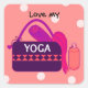 Un design amusant avec un sac de yoga violet, tapis, serviette et bouteille d'eau. Les mots amour mon peuvent être changés comme souhaité.