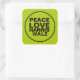 Nos Stickers Campagne Carré vert PEACE LOVE HARRIS WALZ Neon sont un moyen cool de montrer votre soutien à Kamala Harris et Tim Walz. Le design est d'inspiration moderne et comporte du texte en noir joint à un arrière - plan néon vert accentué noir. Nous avons conçu celui-ci avec ceux qui croient en la puissance de la paix et de l'amour pour aider à guérir cette nation. Disponible en 2 tailles étiquettes. Parfait pour vos envois et événements de campagne HARRIS WALZ 2024. Prix par feuille avec les remises sur le volume disponibles.