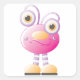 Sticker Carré Alien Rose mignon Avec Grands Yeux