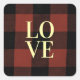 Sticker Carré Amour cosy : Rouge et Noir Plaid Flannel Design