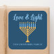 Un autocollant d'Amour et d'Hanoukka léger sur mesure pour une famille juive ou un parti Chanukah avec une synagogue. Personnalisez avec votre nom de famille ou informations de groupe en bleu sous la jolie menorah or.