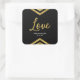 Cet autocollant carré moderne comporte un élégant chevron géométrique et le mot "Amour" en faux or contre un arrière - plan noir. C'est un autocollant polyvalent que vous pouvez personnaliser pour divers événements que vous projetez de célébrer comme mariage, fiançailles, anniversaire, etc. Consultez les invitations et les éléments correspondants ici http://www.zazzle.com/collections/modern_faux_gold_chevron_celebration_collection-119531050277382712?rf=238364477188679314 Personnalisez-le avec vos détails en remplaçant le texte de l'espace réservé. Pour plus d'options, cliquez sur le bouton "Customiser". *Veuillez noter que le filigrane Zazzle qui apparaît dans l'aperçu du zoom n'apparaîtra PAS sur le produit imprimé final. © Bois de rose et agrumes