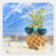 Sticker Carré ananas tropical avec lunettes de soleil