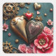 Sticker Carré anciens cœurs et engrenages métalliques Steampunk