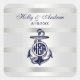 Sticker Carré Ancre Bleue Argent Blanc Cercle Marine Monogramme