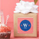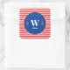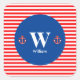 Classic chic ancre nautique design sur cercle bleu avec rayures blanches et rouges motif sur l'arrière - plan. Il a du texte personnalisable et du monogramme au centre, qui peut être changé à votre préférence. Veuillez vérifier ma collection pour les articles correspondants.