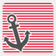 Sticker Carré Ancre Nautique; Rayures rouges Cadmium; Rayures