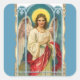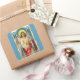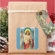 Peinture vintage d'un ange avec un grand ruban rouge, belle fumée blanche avec des parures d'or et les mains ensemble dans la prière