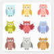 Autocollant de hiboux vecteurs de différentes couleurs en rangée.