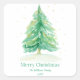 Sticker Carré Aquarelle Arbre de Noël Avec Neige Or