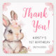 Sticker Carré Aquarelle Cerise Fleurs Rabbit Anniversaire