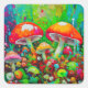 Sticker Carré Aquarelle Champignons Abstraits