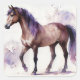 Sticker Carré Aquarelle Cheval Brown Avec Violet