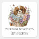 Sticker Carré Aquarelle CKCS Chiot en Fleurs Ce livre appartient